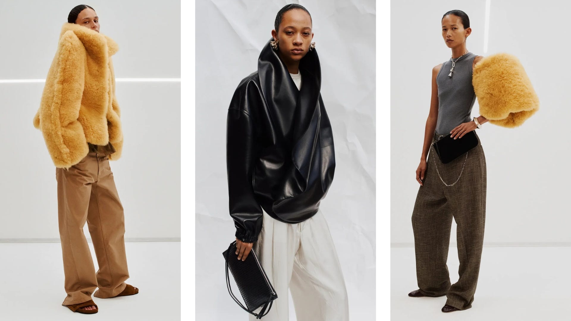 Her first collection was a jolt of restraint in an era of excess: precise trousers, minimal leather dresses, a calm palette, clothes made to move through the world. She made classics modern and functionality desirable. She also made a statement — rejecting the male gaze that defined so much of the early 2000s and dressing women for themselves.