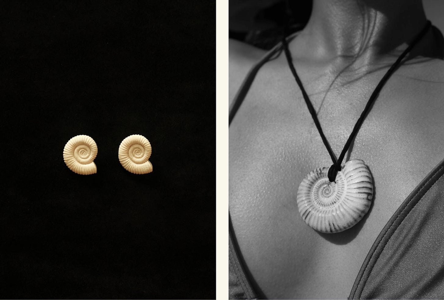 This drop was not intended to lean so heavily handmade, yet here we are. Sagu’s ceramic jewelry continues the theme. Natural materials, organic shapes, and sculptural beauty, as the brand itself describes. I was first drawn to their ceramic nautilus shell earrings and later found this pendant in ivorystone. It feels as though they have found a way to make the ocean wearable.