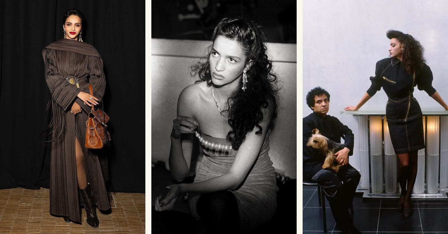 Photographer Jean-Paul Goude later introduced Khelfa to Azzedine Alaïa. The two formed a deep bond rooted in their shared North African heritage and cultural understanding. Alaïa encouraged her to expand beyond modeling, giving her the confidence to step into a more influential creative role. She would eventually lead the design studio, shaping collections from the inside.